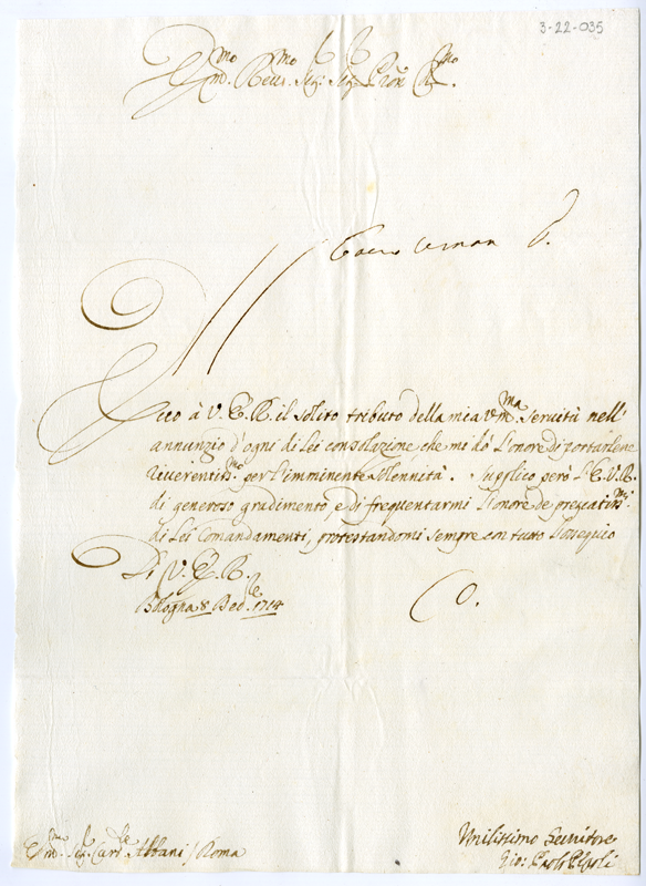 Lettera di Giovanni Paolo Pepoli al cardinale Annibale Albani (1714 dicembre 8)