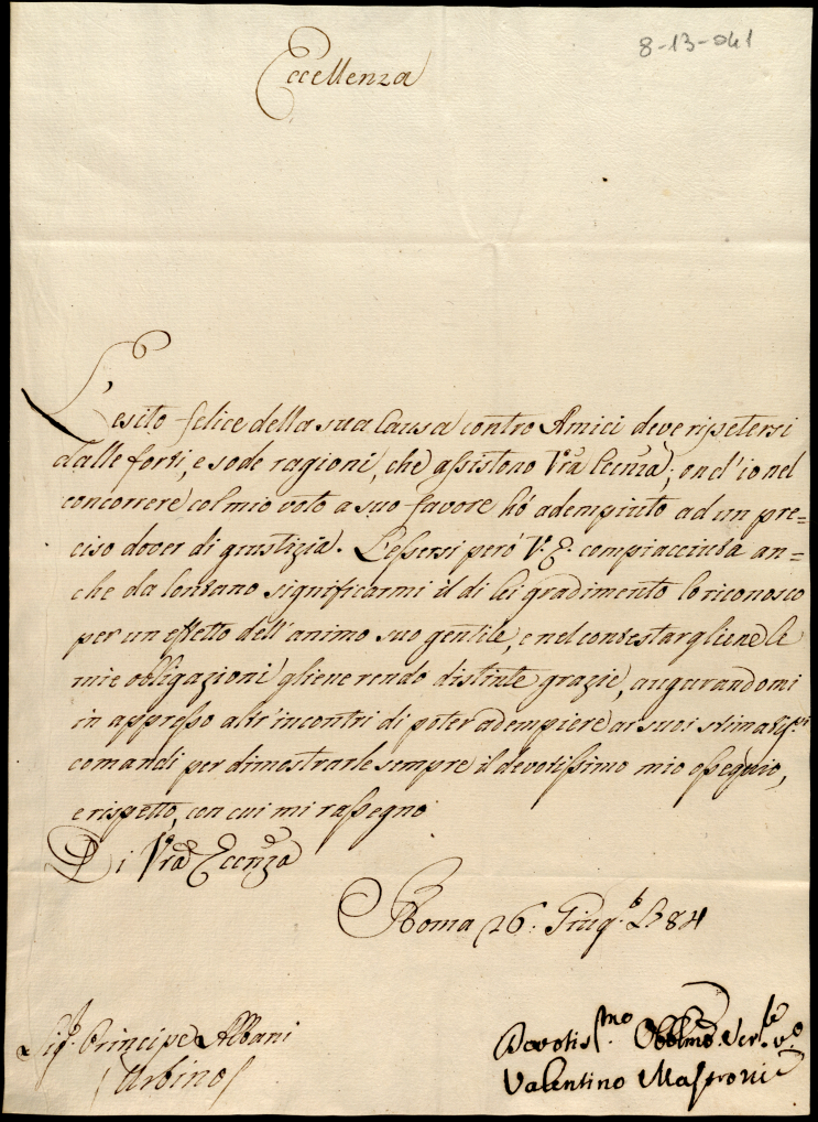 Lettere diverse ricevute in Colbordolo, Pesaro e Senigallia nel 1784
