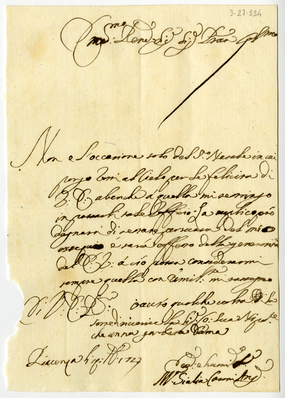 Lettera di Giulia Cosmi al cardinale Annibale Albani (1723 dicembre 19)