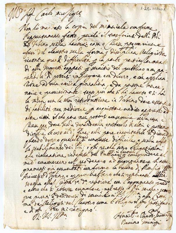 Difficoltà del trasferimento in Urbino dei Padri della Madre di Dio