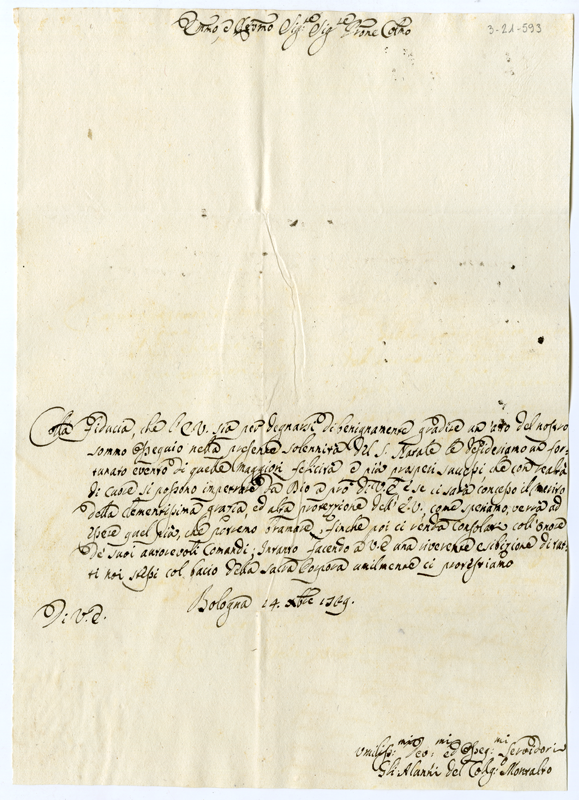 Lettera degli alunni del collegio Montalto di Bologna al cardinale Annibale Albani (1729 dicembre 14)