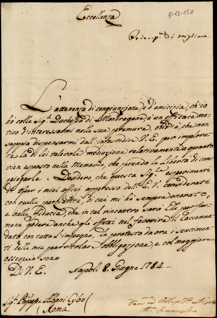 Lettere diverse ricevute in Colbordolo, Pesaro e Senigallia nel 1784