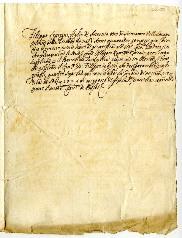 Chiede un beneficio semplice in Montelibretti appartenente al canonico Giovanni Filippo De Rossi