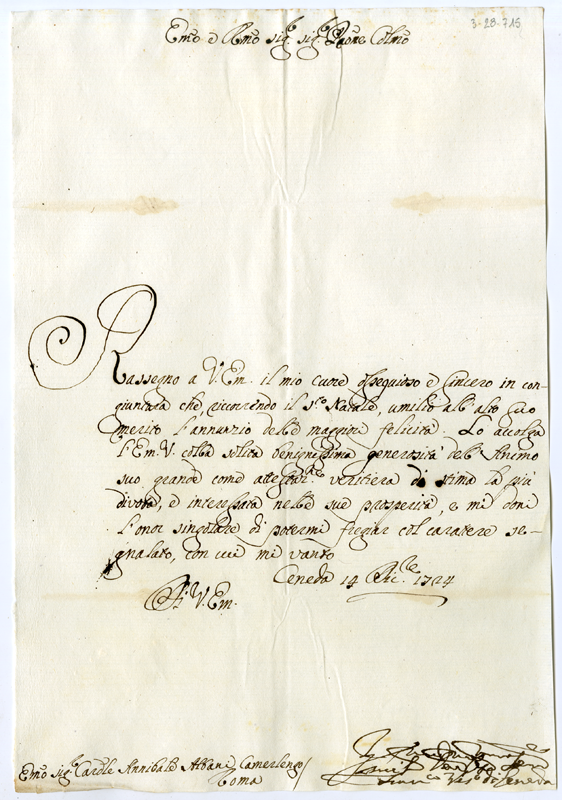 Lettera di Francesco vescovo di Ceneda al cardinale Annibale Albani (1724 dicembre 14)