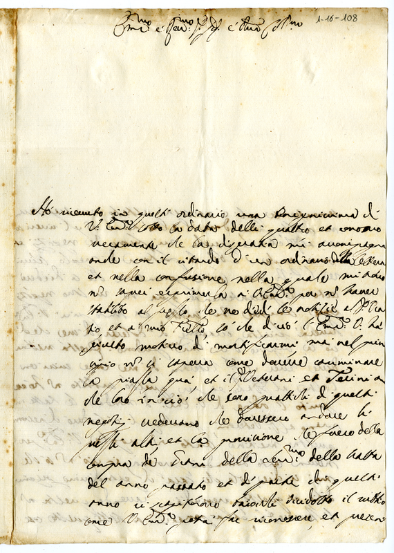 Lettera di Malatesta Olivieri degli Abbati a Giovanni Francesco Albani (1693 aprile 13)