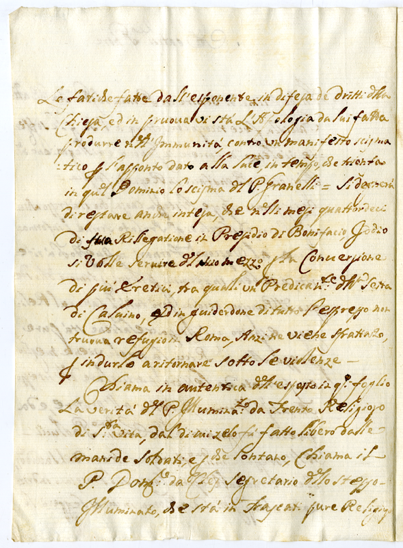 Lettera di fra Giovanni Battista Palciola a papa Clemente XI (1700-1721)