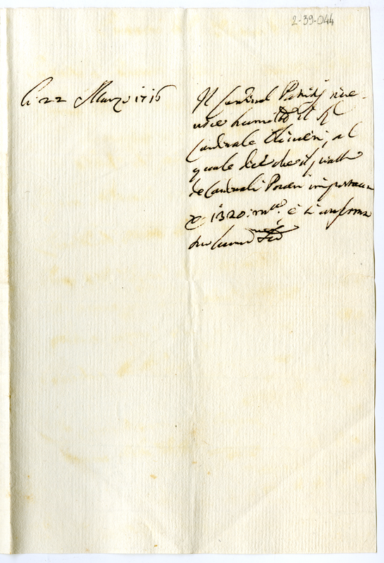 Biglietto del cardinale Patrizi al cardinale Olivieri (1716 marzo 22)