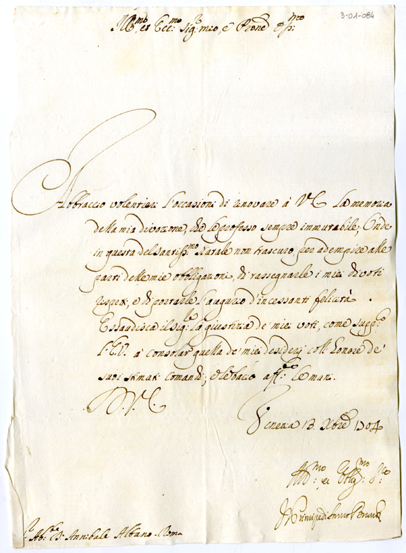 Lettera del principe di Samo Brandi ad Annibale Albani (1704 dicembre 13)