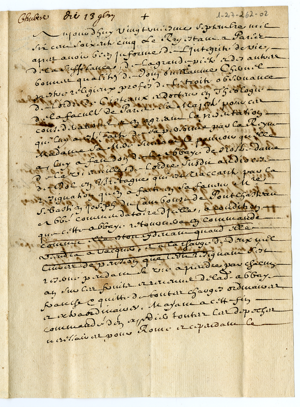 A proposito della lettera di Luigi XIV sulla nomina di Guglielmo Chevrel (1665 novembre 13)