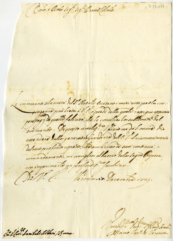 Lettera di Marco vescovo di Verona al cardinale Annibale Albani (1721 dicembre 10)