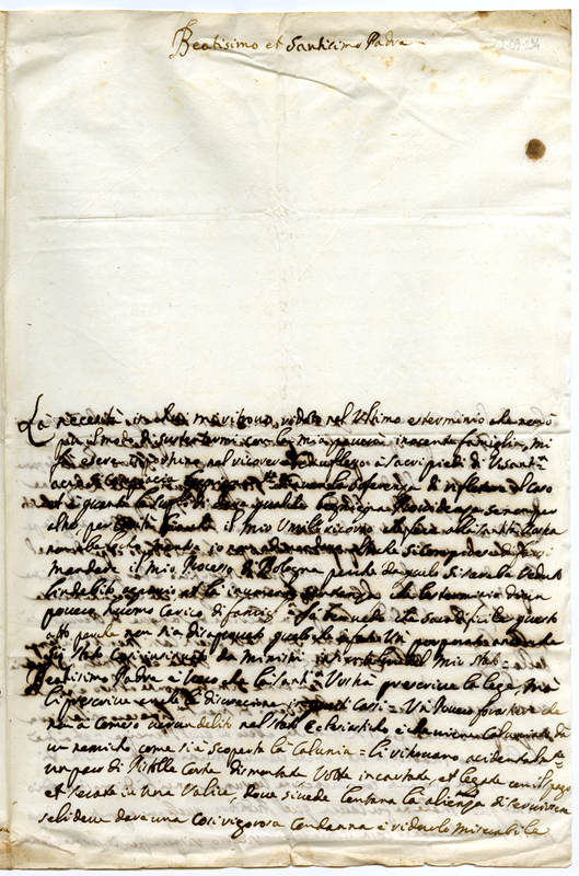 Lettera di Giulio Carobio a Clemente XI (1713 ottobre 14)