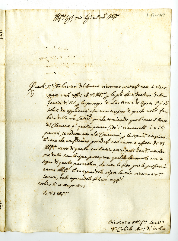 Lettera di Callisto Puccinelli, vescovo di Urbino, a Carlo Albani (1673 marzo 10)