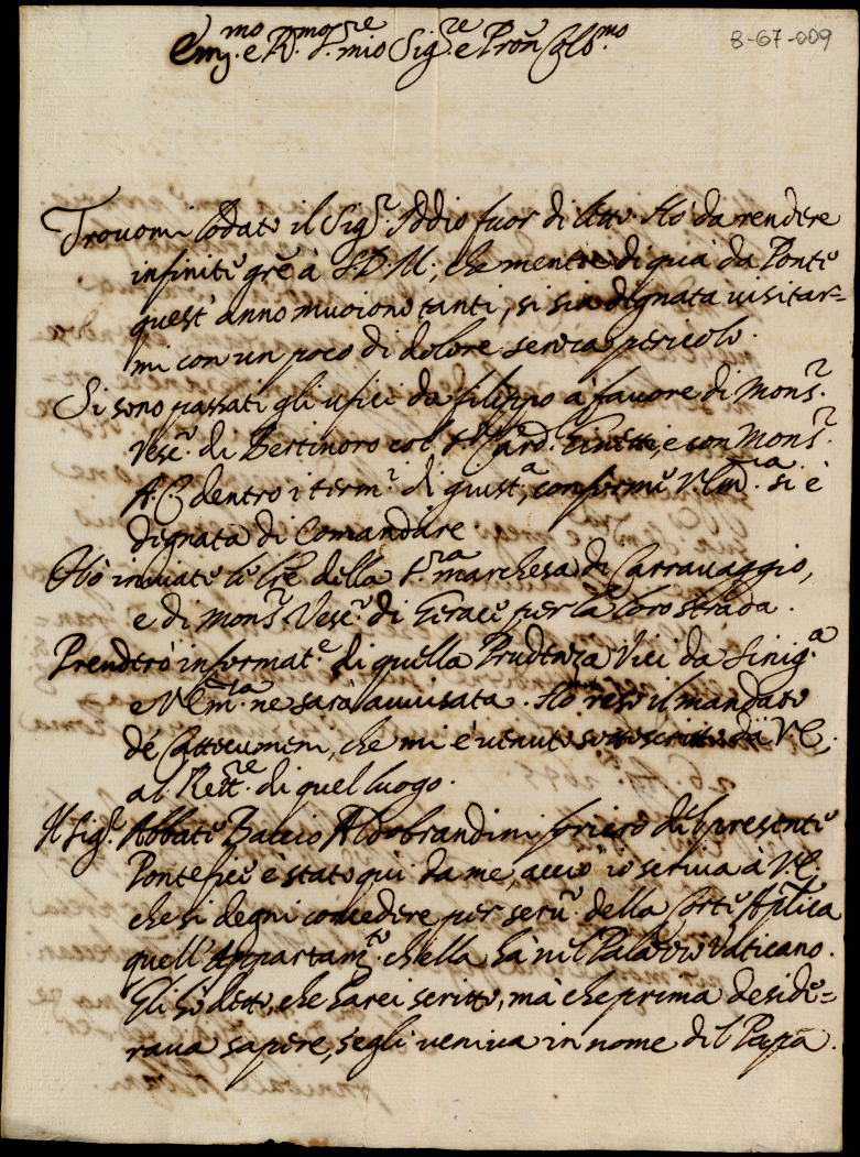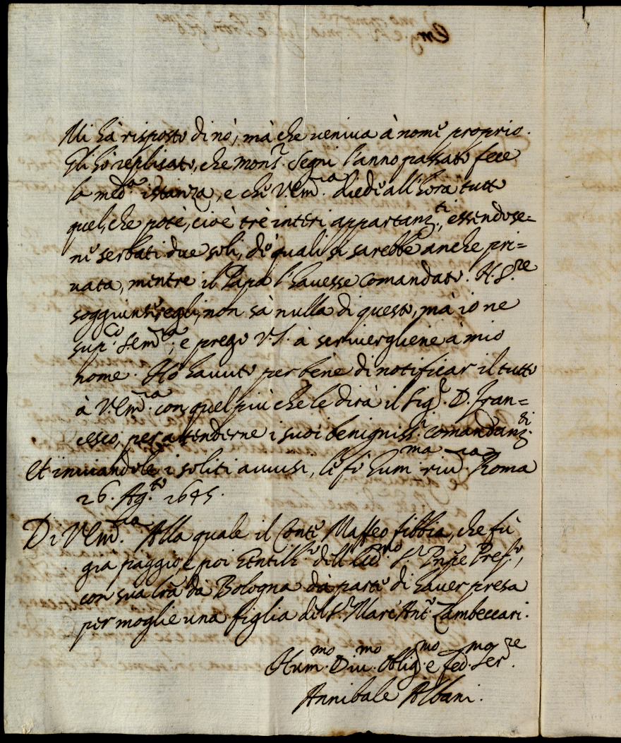Minute di lettere scritte da monsignor Annibale Albani all'eccellentissimo signor cardinale S. Onofrio nel tempo che si tratteneva in Bagnaja