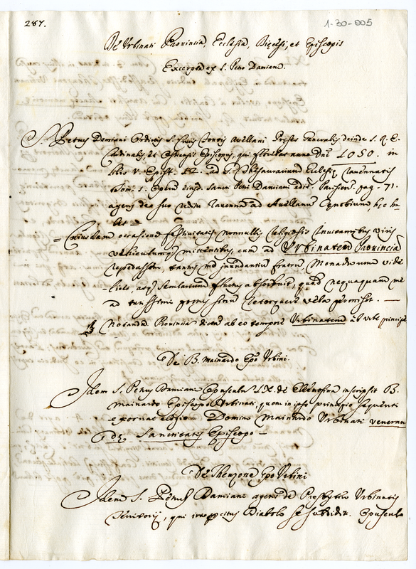 Situazione della Chiesa Diocesi e Vescovi della città di Urbino desunti da San Pietro Damiani (1600-1700