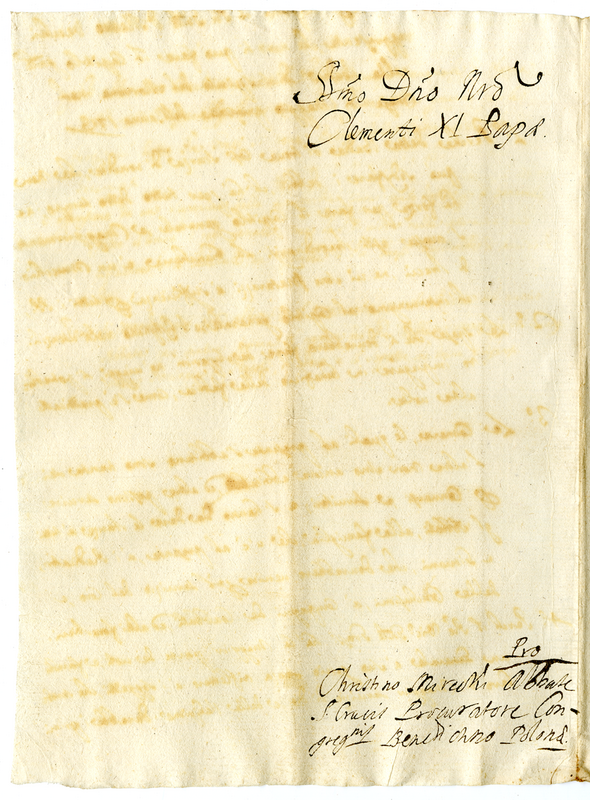 Lettera di Christin Mirecki abbate di Santa Croce della congregazione benedettina polacca a papa Clemente XI (1700-1721)
