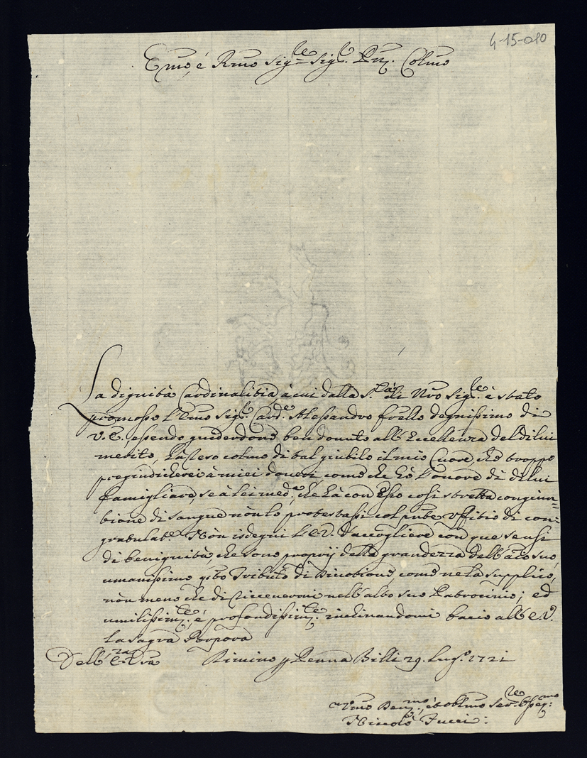 Lettere di congratulazione per l'esaltazione alla Porpora dell'eminentissimo cardinale Alessandro Albani