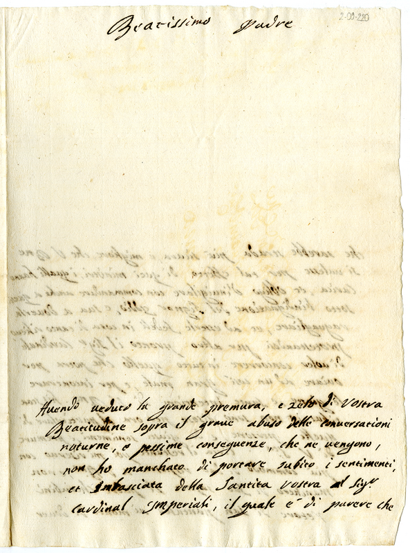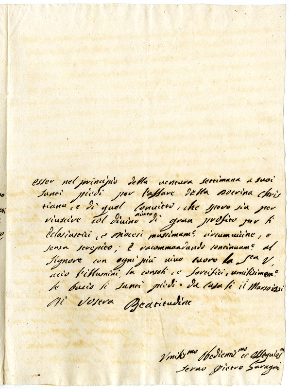 Lettera di Pietro Saragni a Clemente XI (1721 marzo 11)