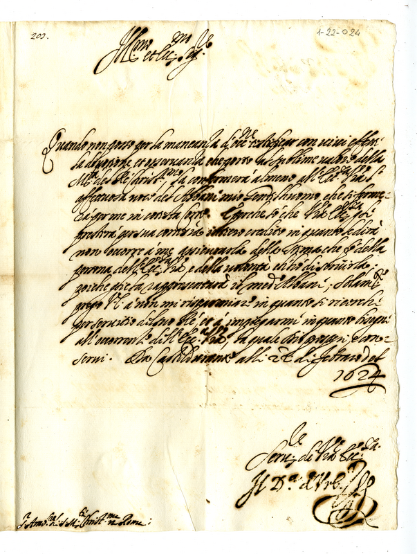 Lettera di Francesco Maria II Duca di Urbino all'Ambasciatore di Sua Maestà Cristianissima (1624 febbraio 22)