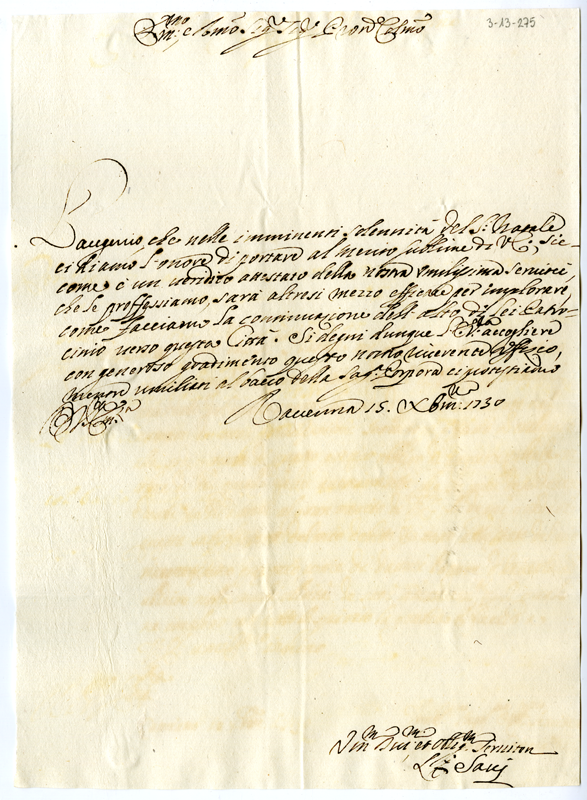Lettera dei savi di Ravenna al cardinale Annibale Albani (1730 dicembre 15)