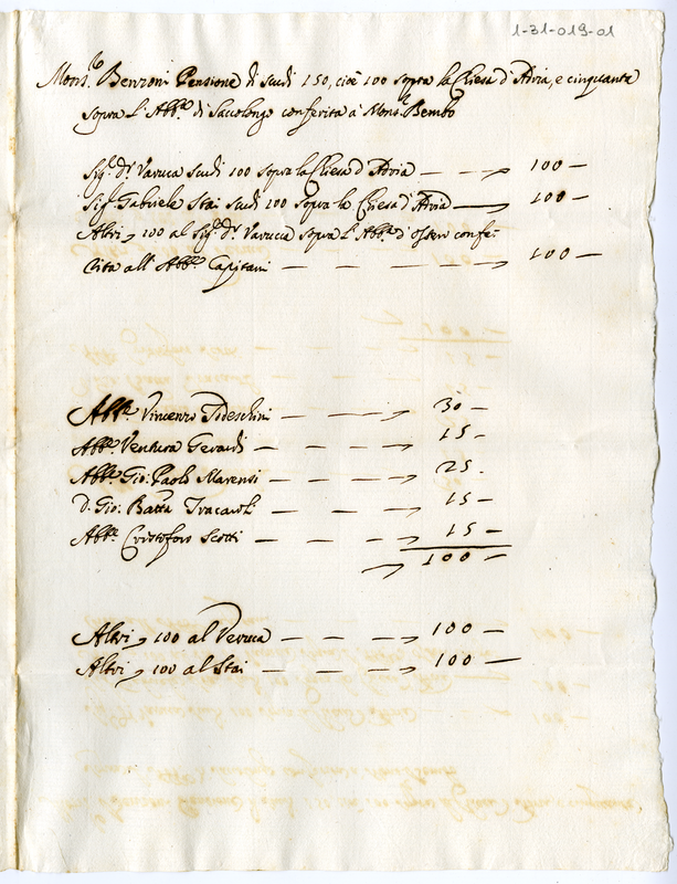 Appunti sulle pensioni di monsignor Benzoni (1700-1721)