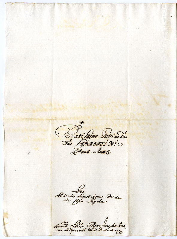 Lettera di Bonus Giuseppe Andrea di Egenrodt a Clemente XI (1700-1721)