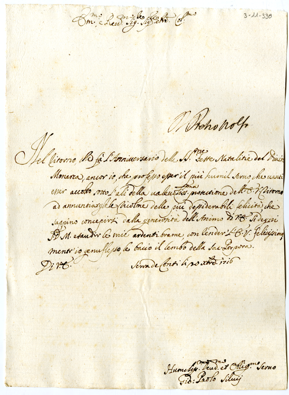 Lettera di Giovanni Paolo Silvi al Cardinale Annibale Albani (1716 dicembre 20)