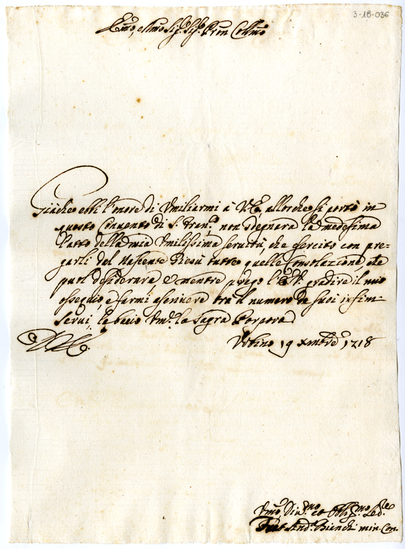Lettera di frate Andrea Bianchi ad Annibale Albani (1718 dicembre 19)