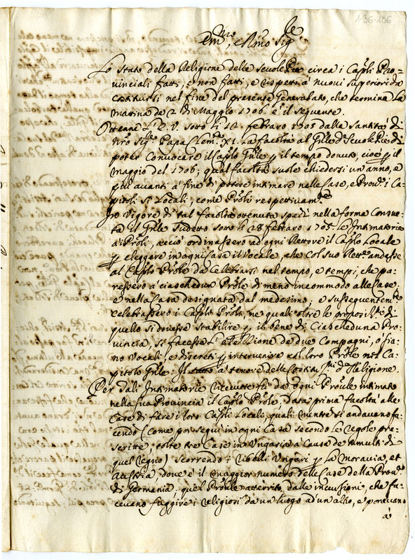 Memoria sullo stato della Religione delle Scuole Pie nelle varie Provincie inviata ad un Cardinale (1706)