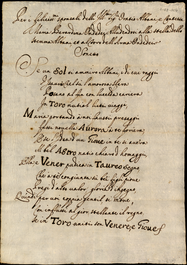 Vari componimenti poetici fatti per il matrimonio del Signor Orazio Albani con la Signora Maria Bernardina Ondedei