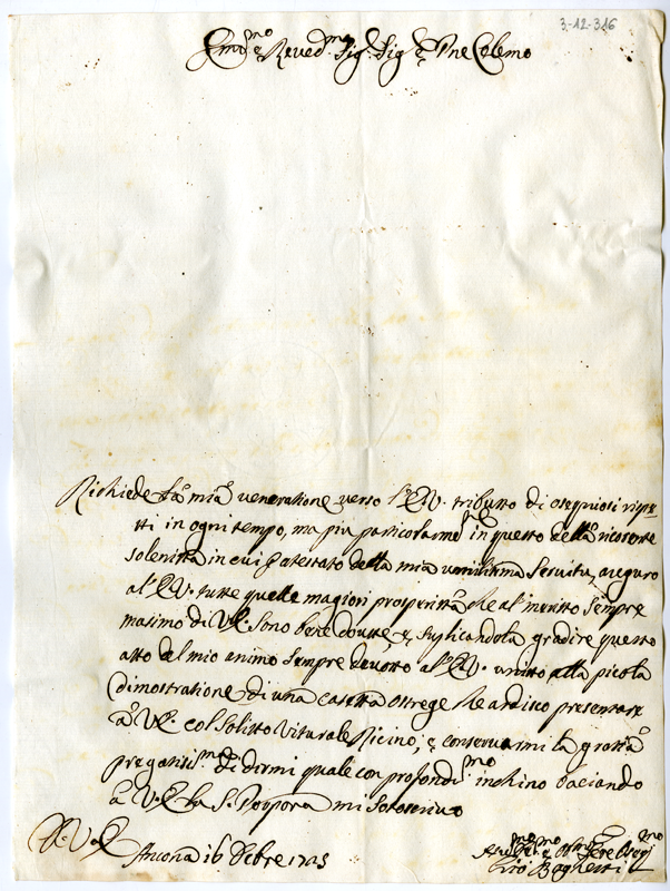 Lettera di Giovanni Baghetti al cardinale Annibale Albani (1725 dicembre 16)