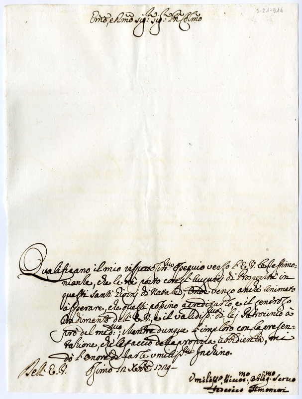 Lettera di Federico Simonetti al cardinale Annibale Albani (1729 dicembre 12)
