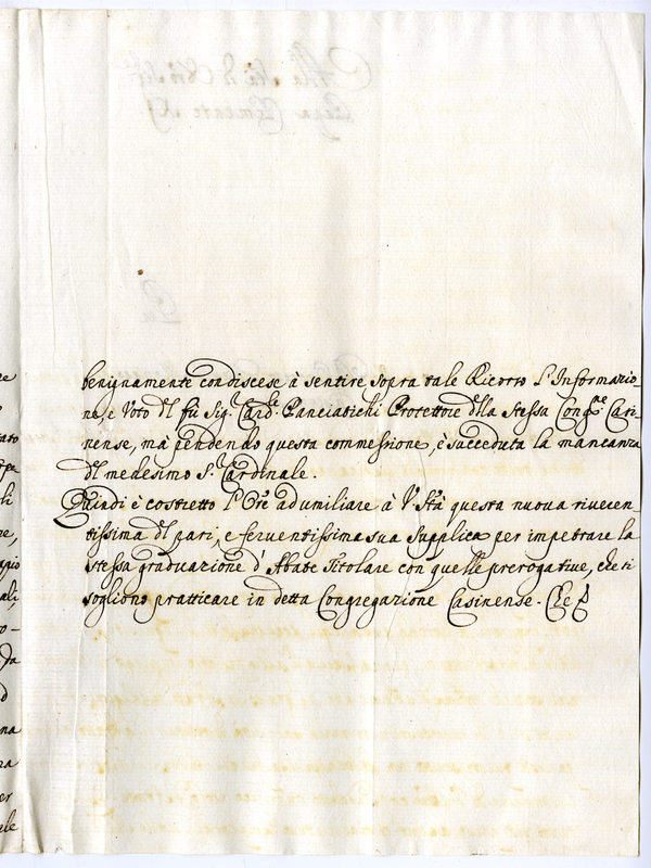 Lettera di Onorato Gazola monaco casinense a papa Clemente XI (1700-1721)