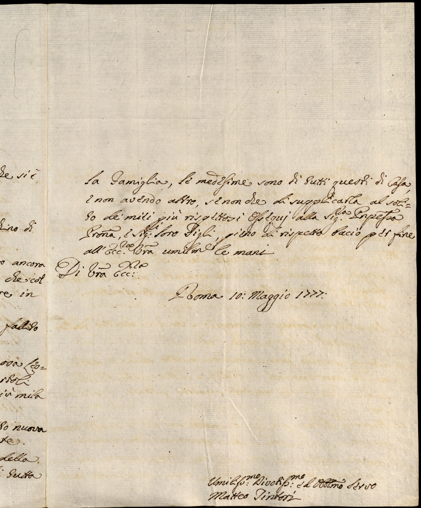 3. Lettere ricevute in Urbino nella permanenza in Urbino nei mesi di maggio, giugno e luglio 1777