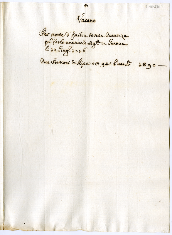 Benefici vacanti per morte di Emila Teresa Durazzo (1716 giugno 17)