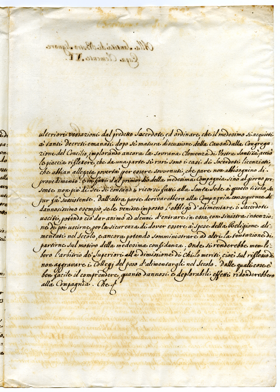 Lettera del Preposito Generale della Compagnia di Gesù a Papa Clemente XI (1700-1721)