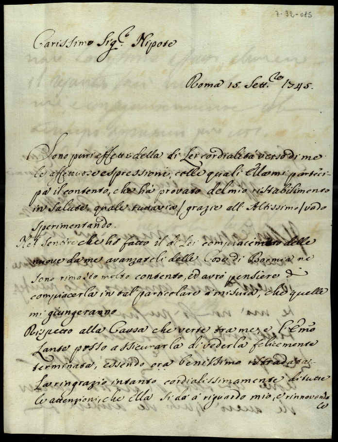 Lettere ricevute in Urbino dal signor Principe Don Orazio Albani ultimo di questo nome nell'anno 1745