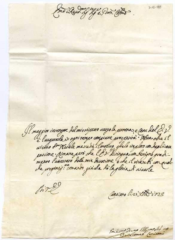 Lettera di Bartolomeo Cenciatti al cardinale Annibale Albani (1725 dicembre 22)