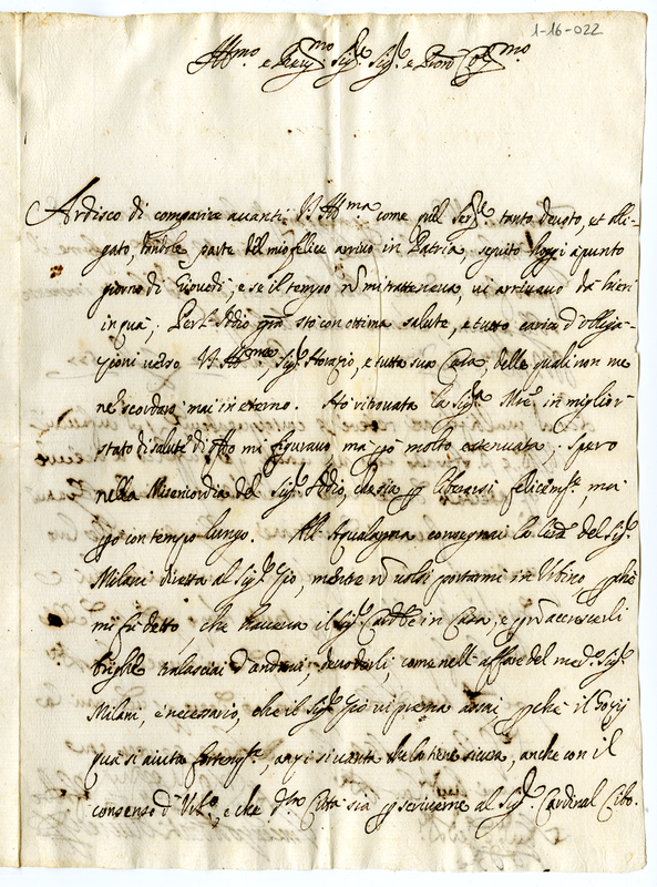 Lettera di Vincenzo Olivieri degli Abbati a Giovanni Francesco Albani (1677 luglio 22)