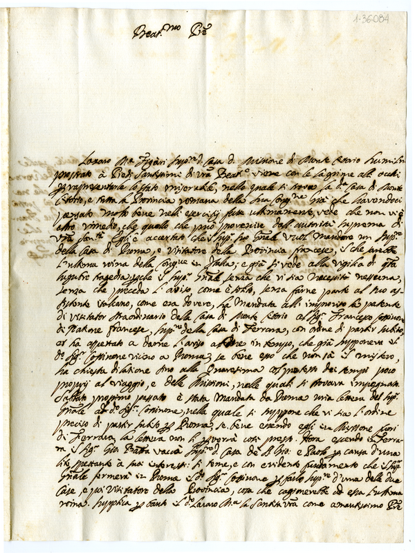 Lettera di Lazzaro Maria Figari Superiore della Casa della Missione di Monte Citorio a Clemente XI (1700-1721)