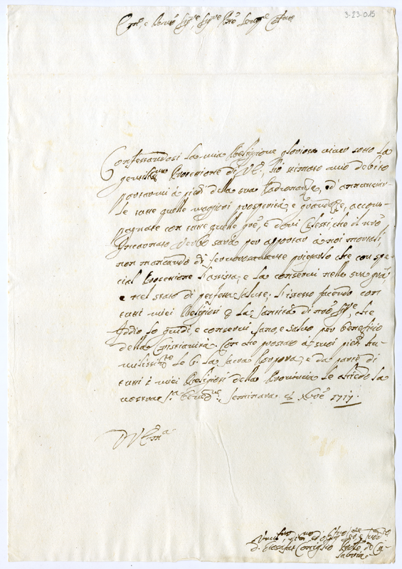 Lettera di don Giosafat Coniglio priore di Calabria al cardinale Annibale Albani (1717 dicembre 8)