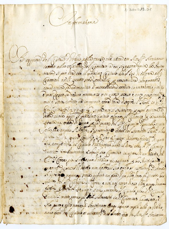 Informazione circa l'istituzione della Penitenziaria ad Urbino (1687)