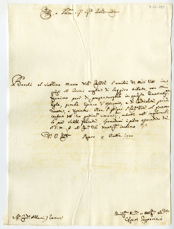 Lettera di Cesare Gasparini al cardinale Annibale Albani (1720 dicembre 5)