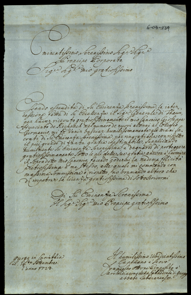 Lettere di complimento e di negozio. 1723. Semestre secondo