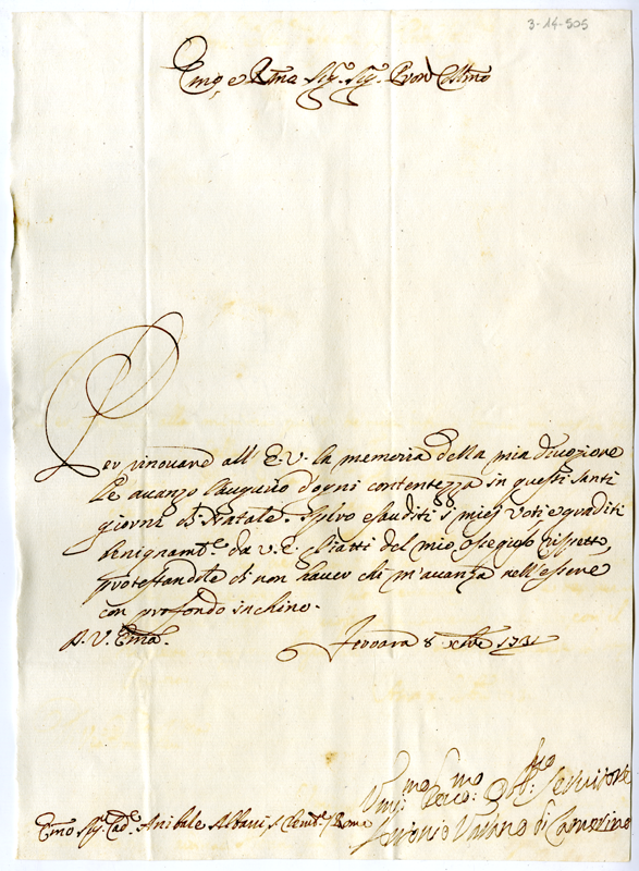 Lettera di Antonio Varano di Camerino al cardinale Annibale Albani (1731 dicembre 8)