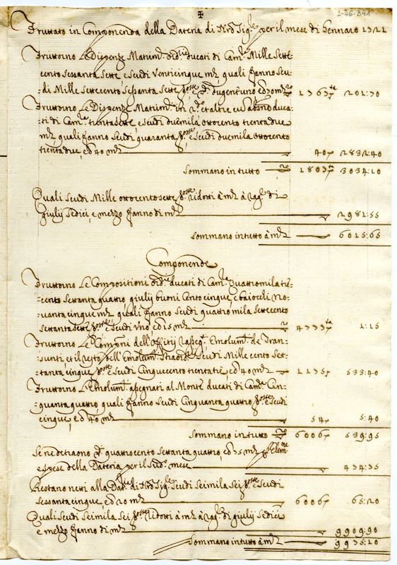 Fruttato in Componenda della Dateria di Nostro Signore per il mese di Gennaro 1721