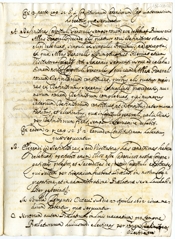 4. Norme tratte dalle costituzioni dei canonici Regolari Lateranensi circa la nomina dei Definitori(1691-1721)