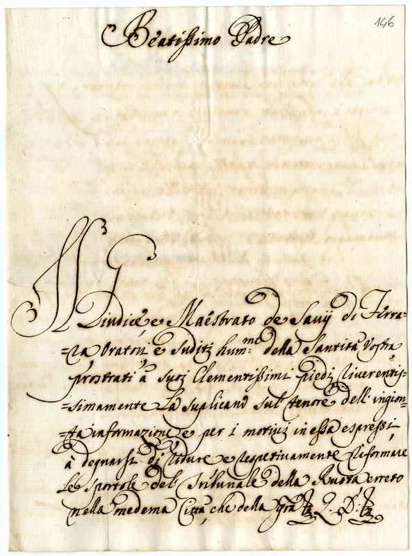 Memoriali, lettere, e suppliche di varie persone sopra diversi affari e bisogni presentate alla santa memoria di papa Clemente XI. 6