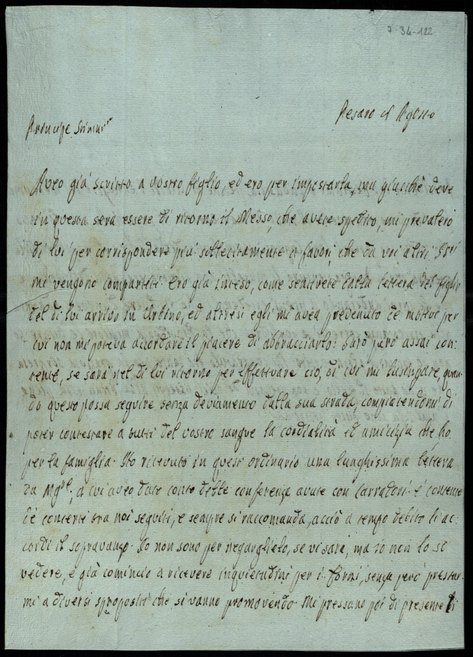 Lettere diverse ricevute dal principe Orazio Albani nella permanenza in Urbino del 1779