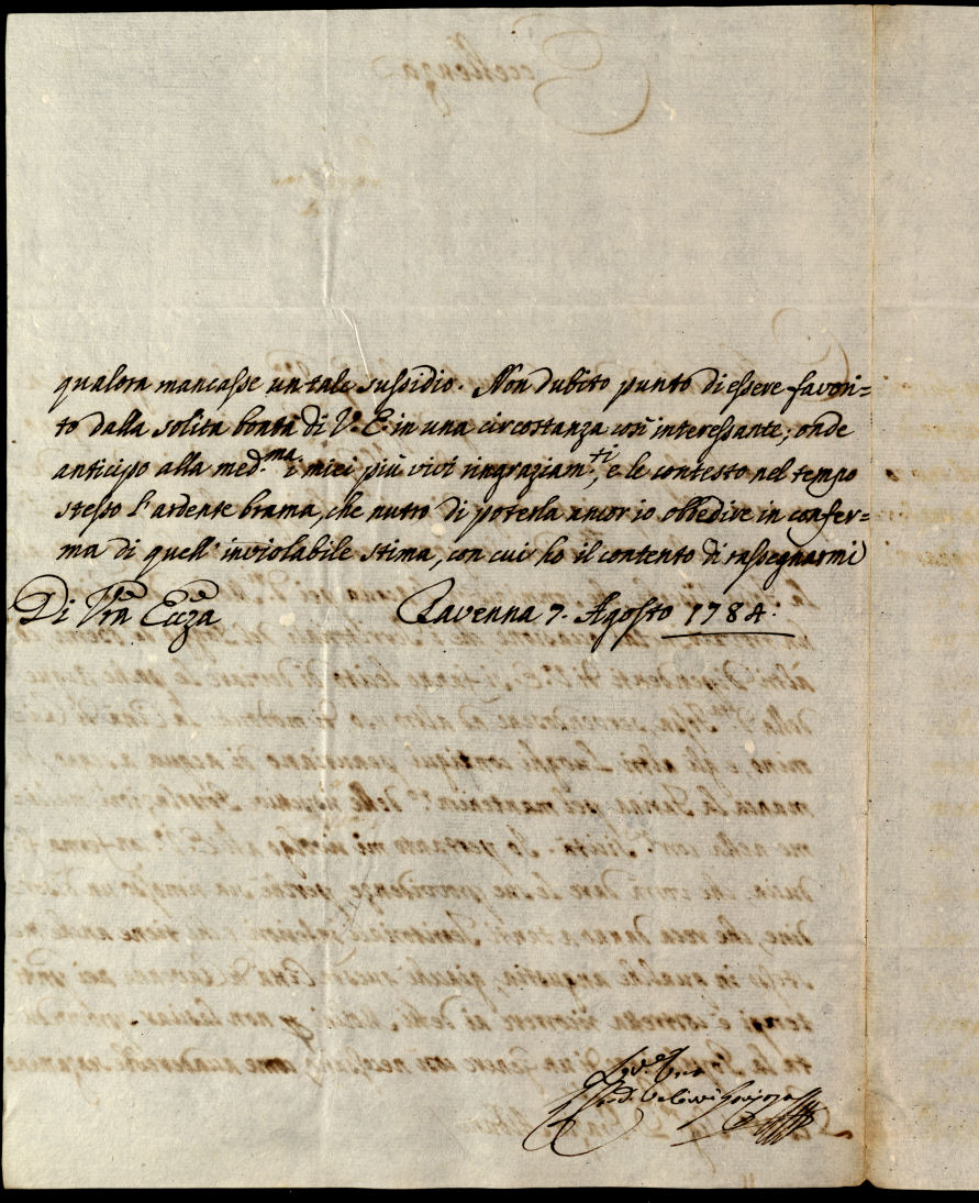 Lettere diverse ricevute in Colbordolo, Pesaro e Senigallia nel 1784