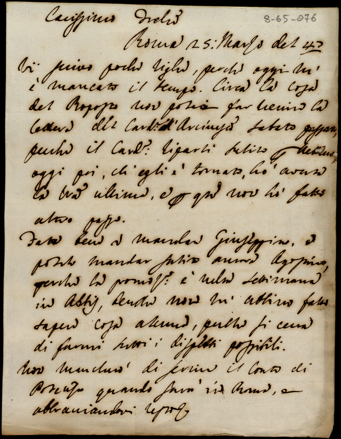 Lettere ricevute in Urbino dal Signor Principe Orazio Albani ultimo di questo nome nell'anno 1747